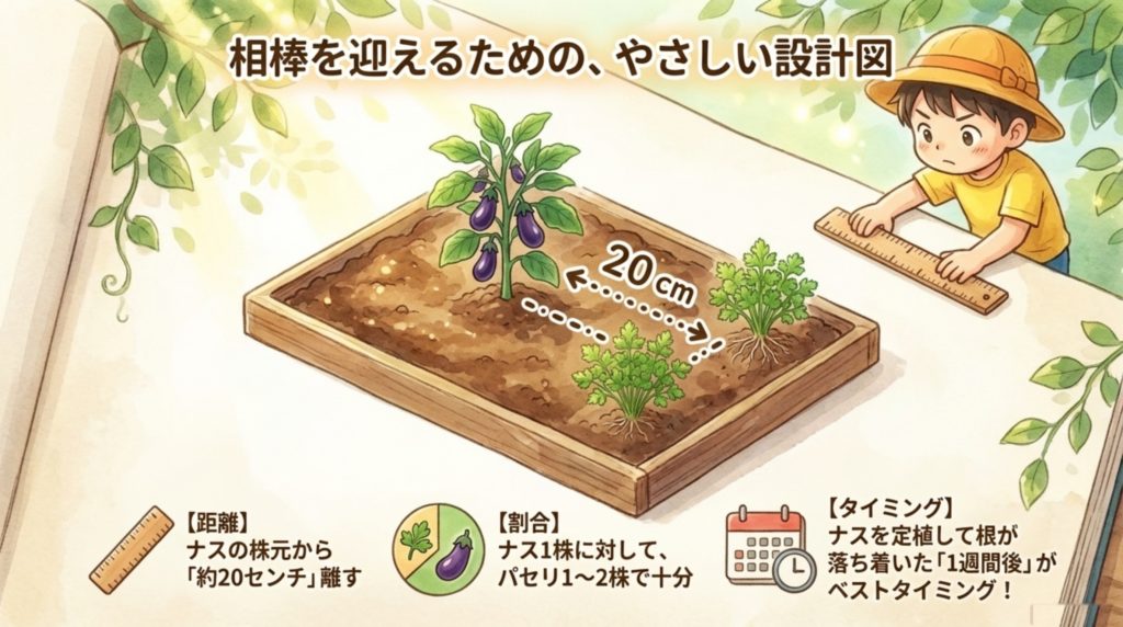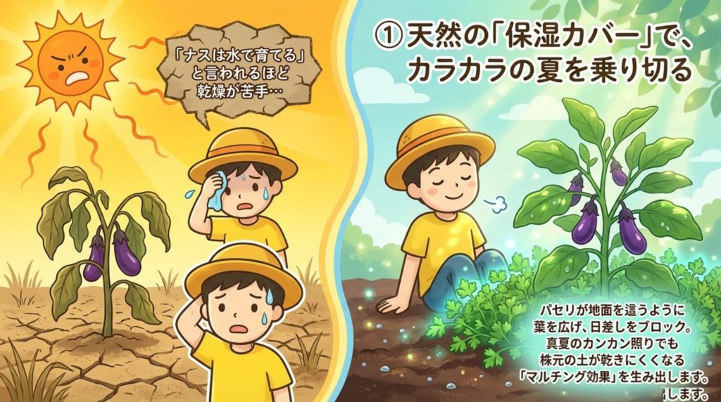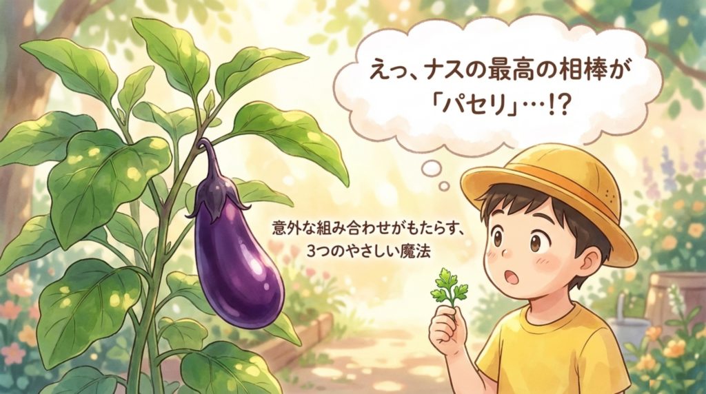 【ポイント①】ナスの隣には「パセリ」を植えるのが正解